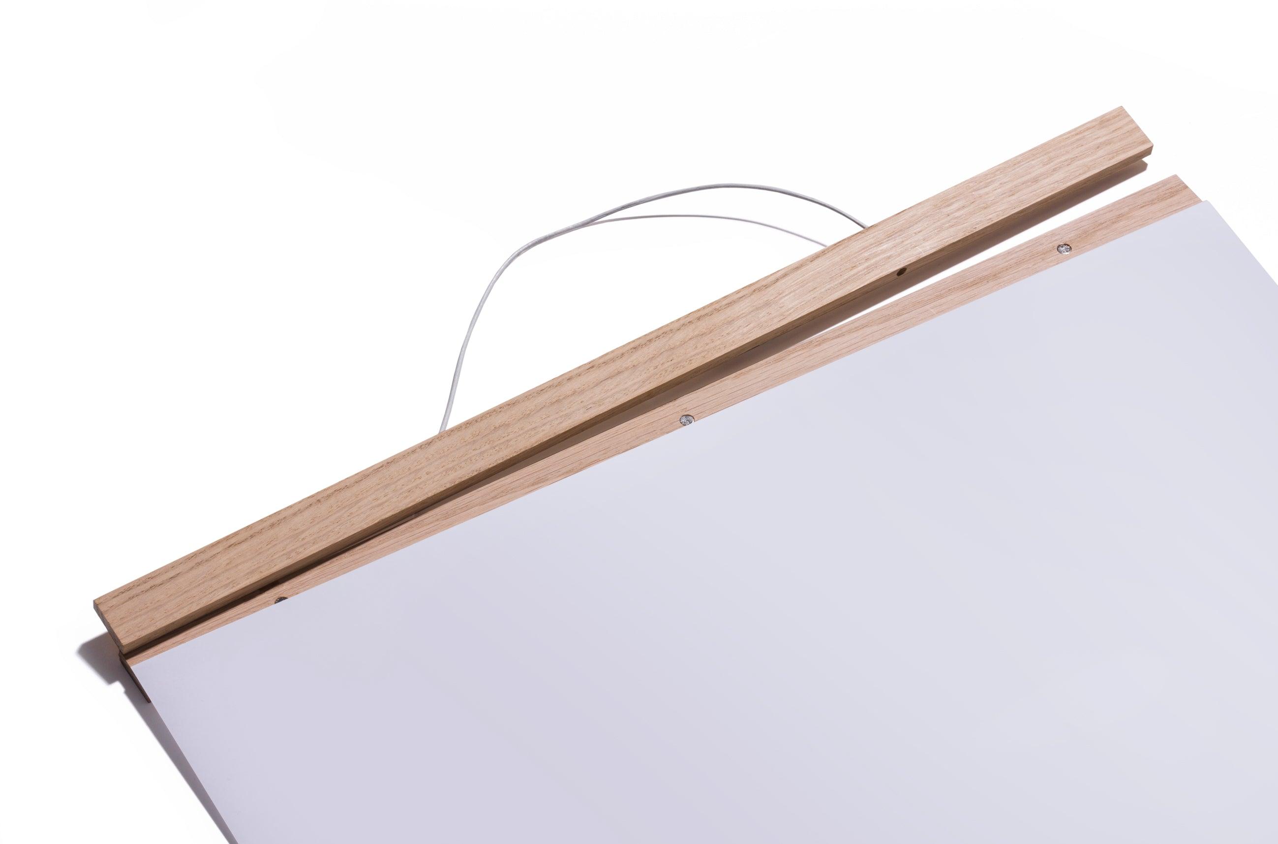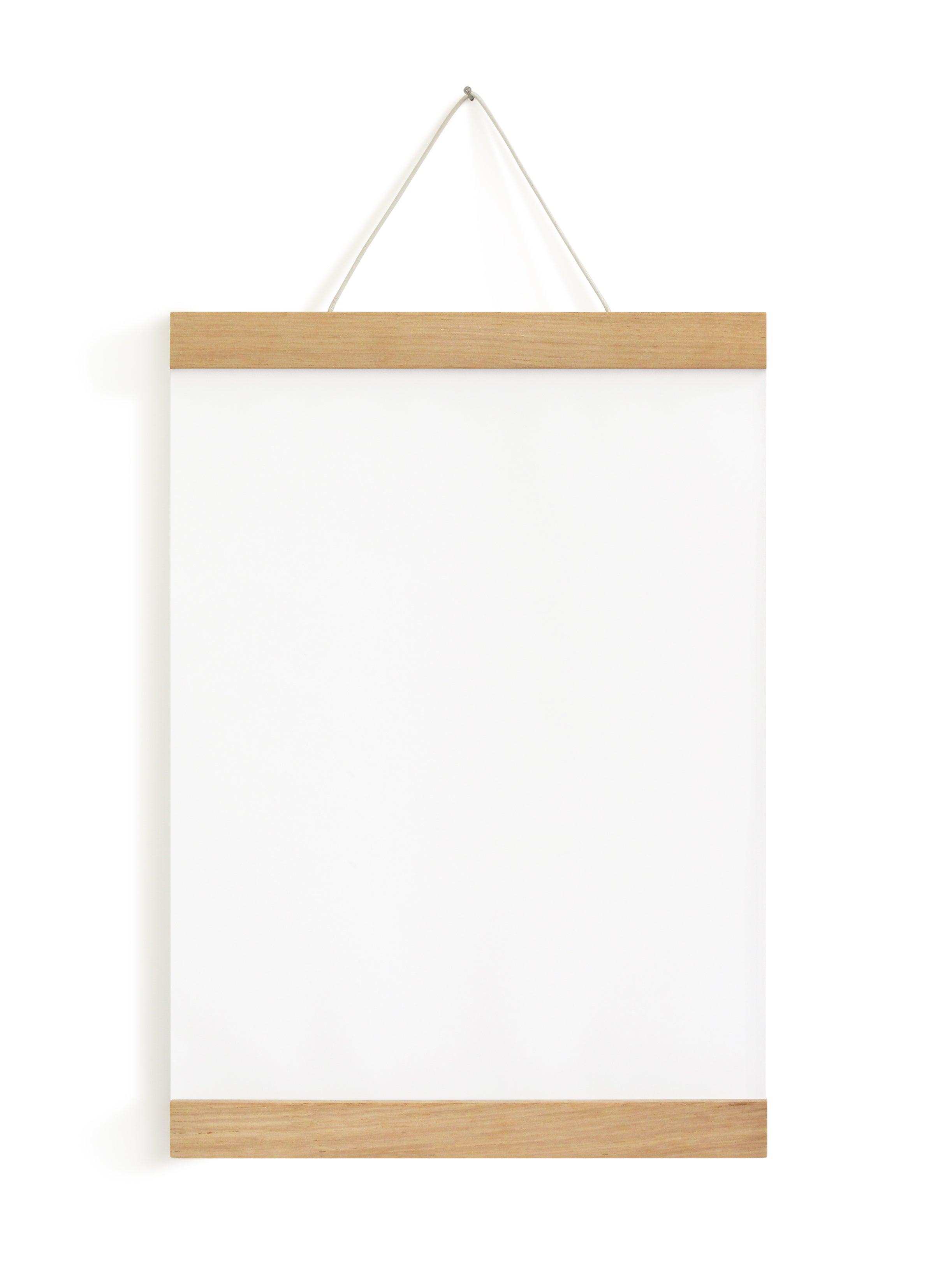 Schöne und hochwertige Posterleiste aus Eichenholz. Die Hölzer sind mit Magneten versehen, sodass Inhalte schnell und einfach ausgetauscht werden können.