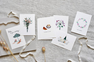 All designs are created in our studio - lovingly illustrated by hand with brush, pen and paint.
