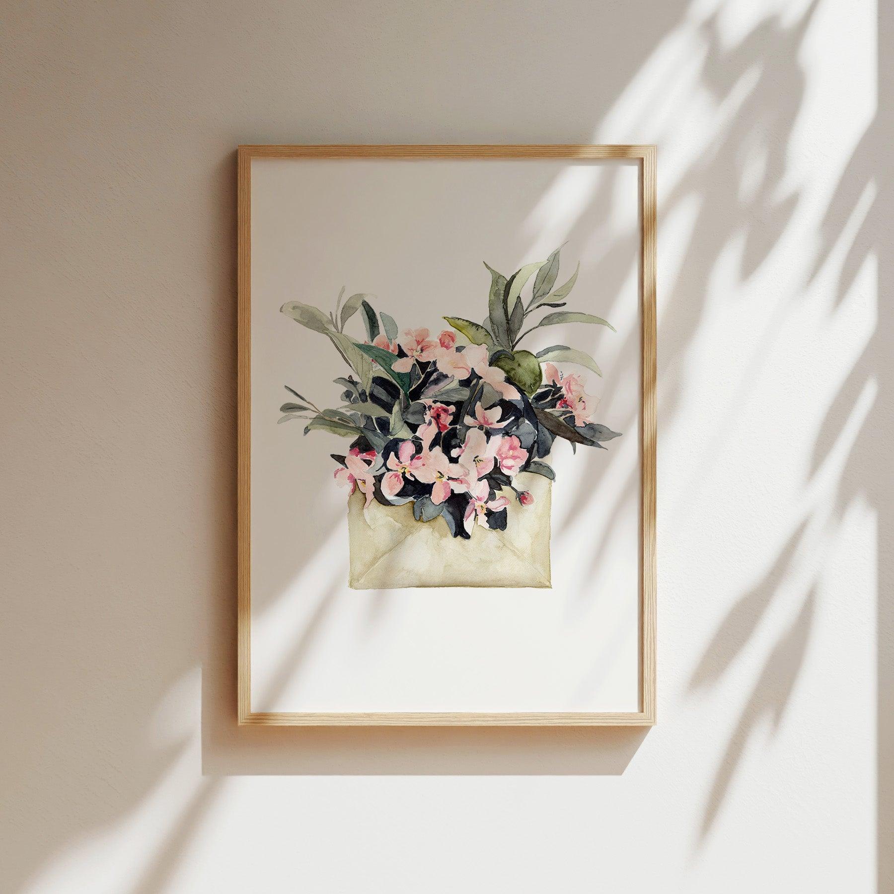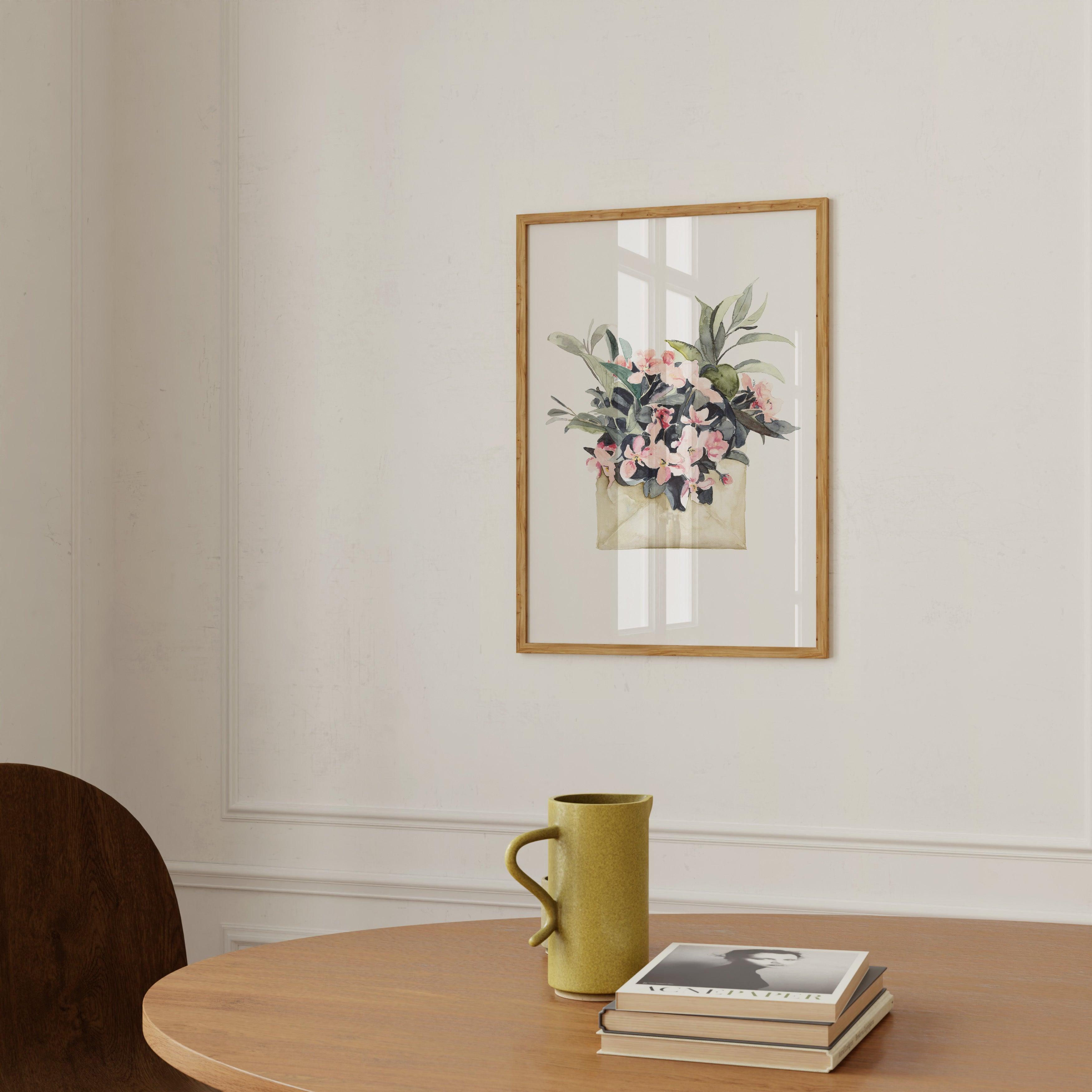 The product offered is only the art print. The mat, frame, and decorations are for presentation purposes only and are not included in the offer.