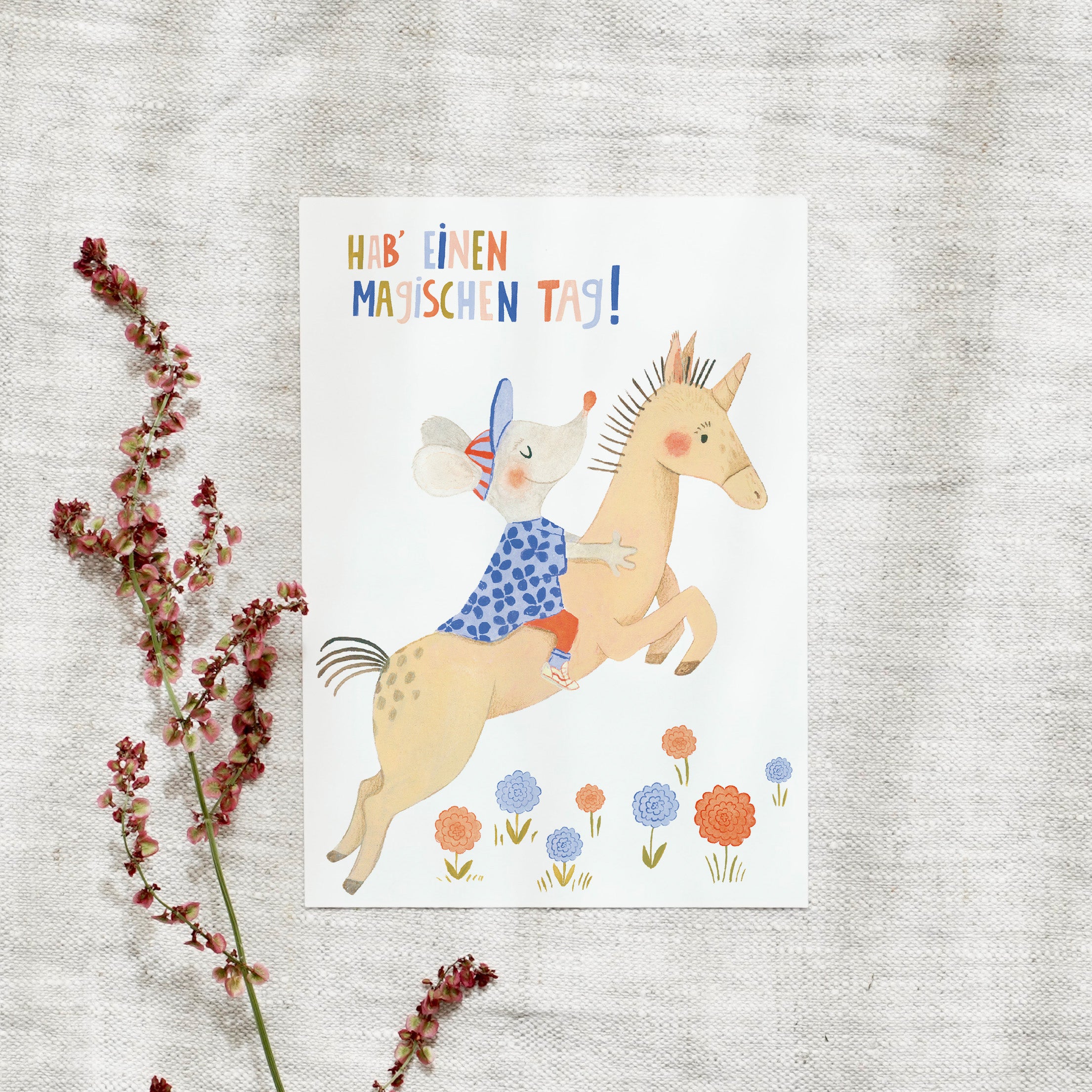 Designed with love in our studio by illustrator Leonie Merle Flöttmann. The original illustration - painted by hand with a brush, pen and watercolor paints - is then printed using the offset printing process, also on high-quality, warm-white uncoated paper (300g).