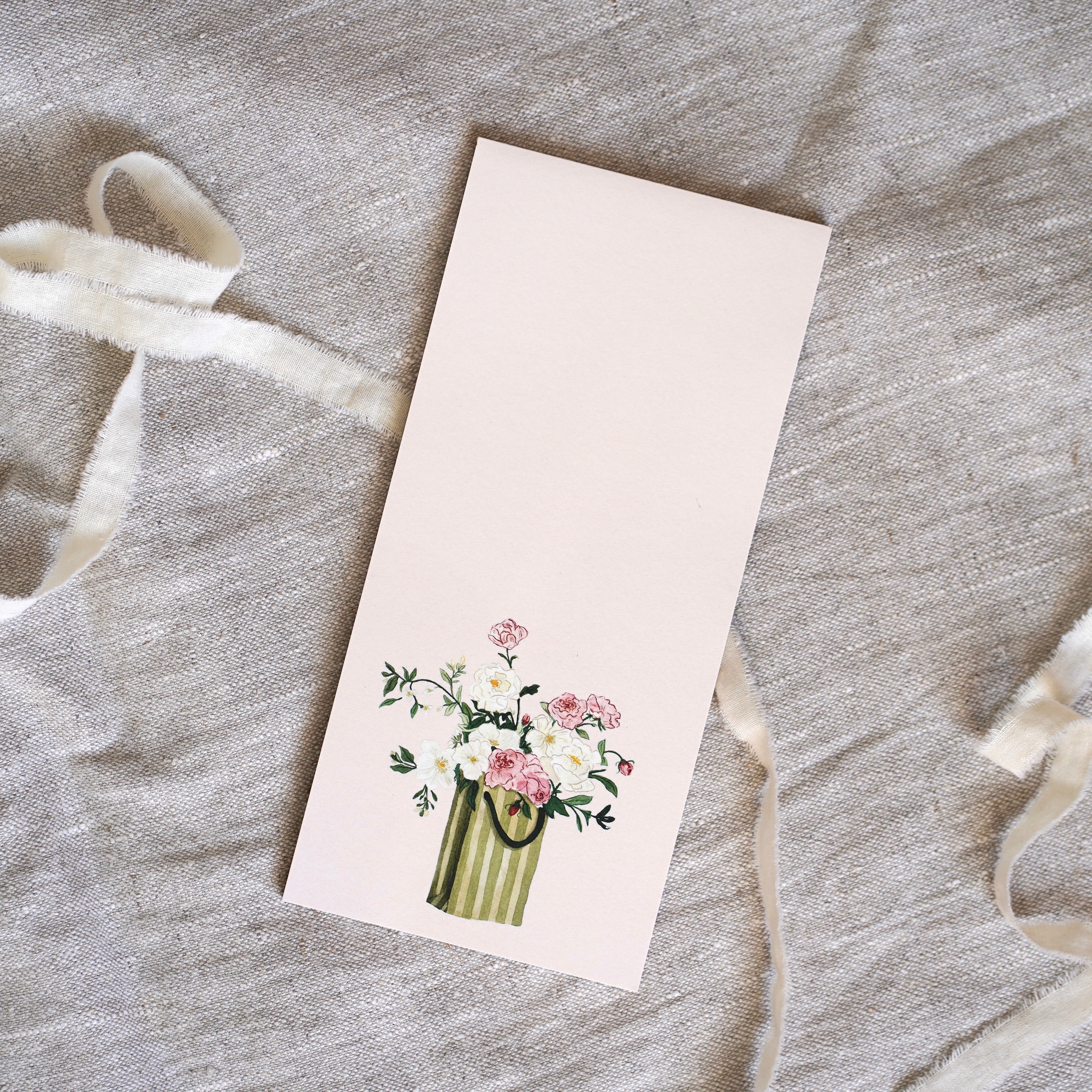 All notepads are illustrated and designed in our studio by Leonie Merle Flöttmann. It is printed in DIN long format on cream-colored uncoated paper (80g). The notepad consists of 50 tear-off pages.