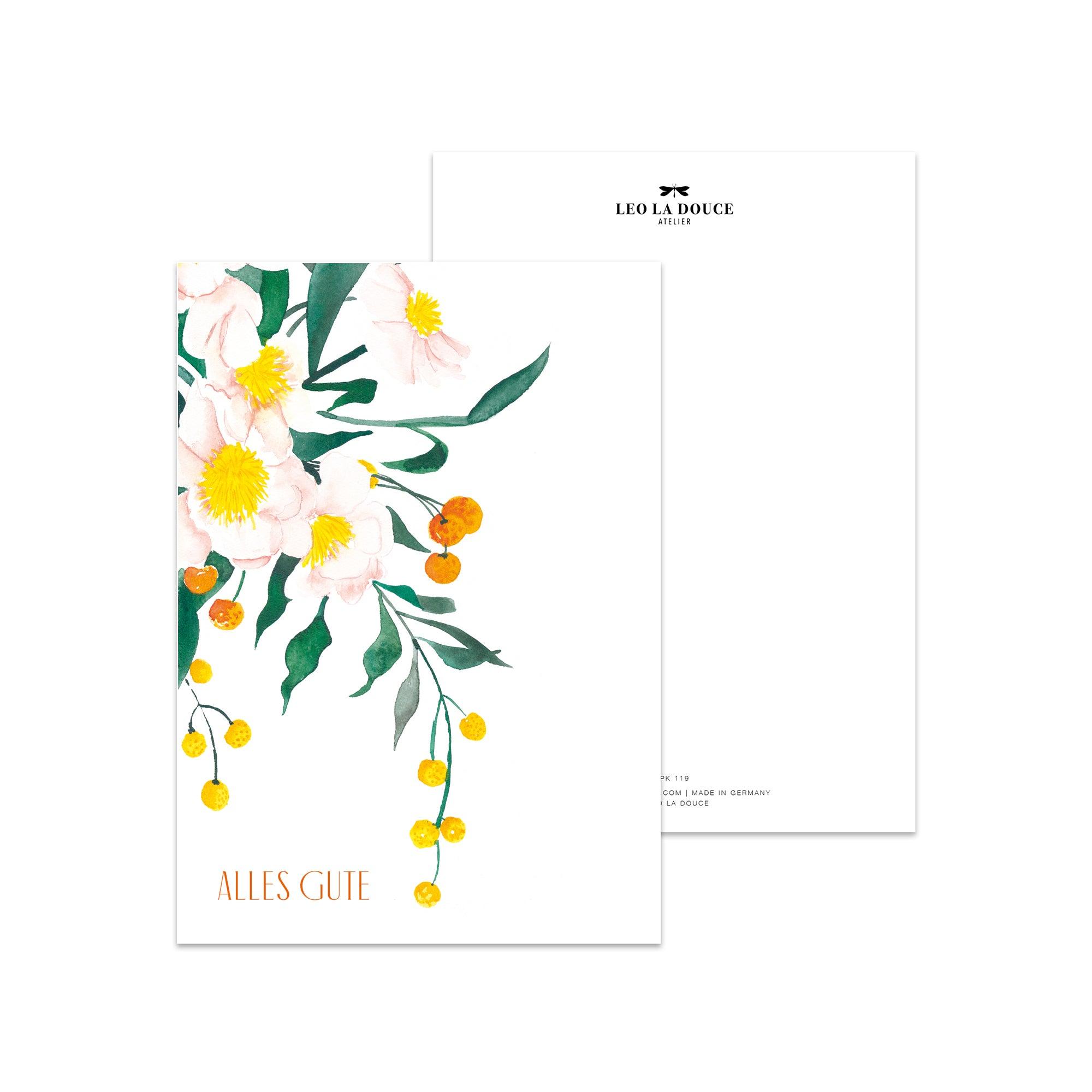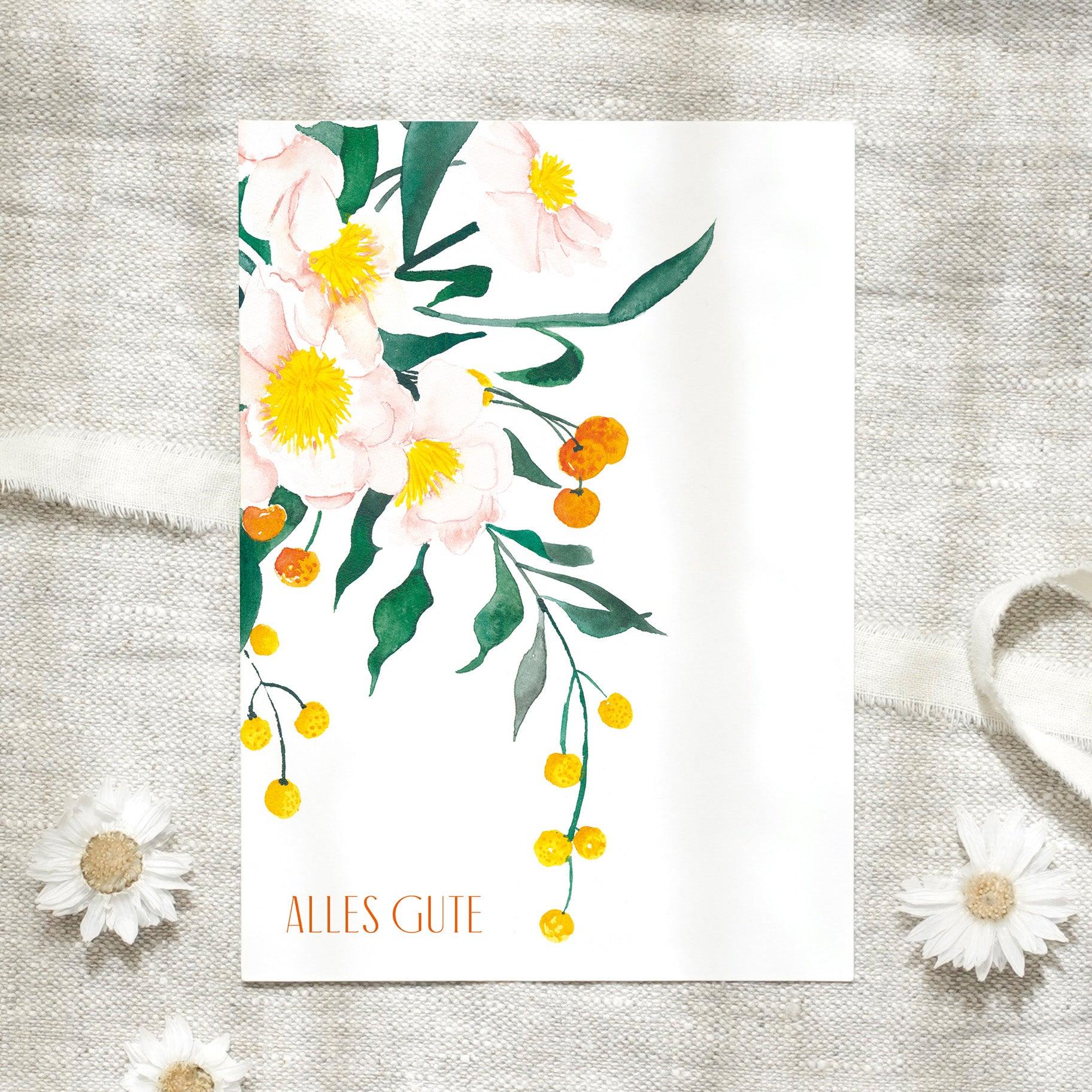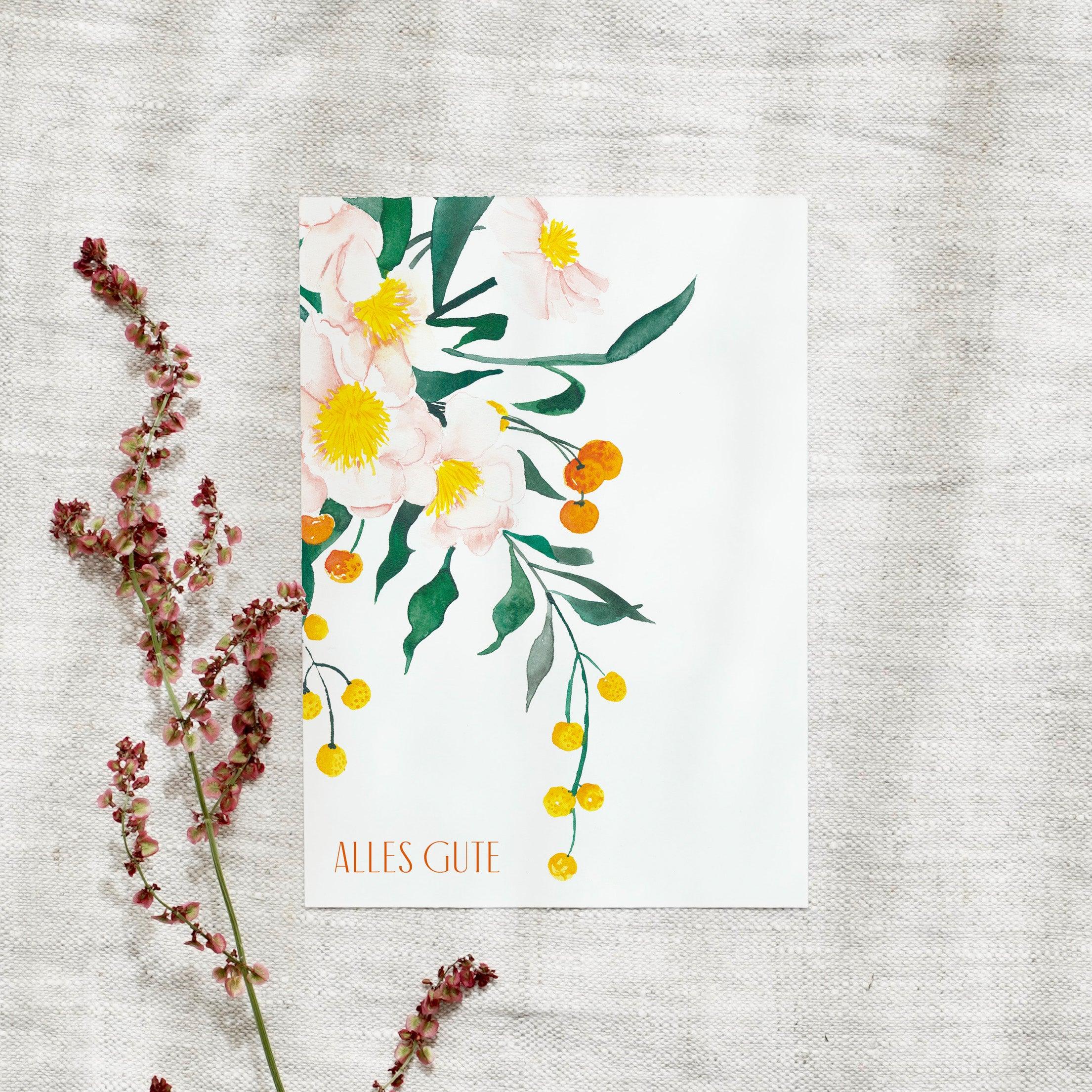 Designed with love in our studio by illustrator Leonie Merle Flöttmann. The original illustration - painted by hand with a brush, pen and watercolor paints - is then printed using the offset printing process, also on high-quality, warm-white uncoated paper (350g).