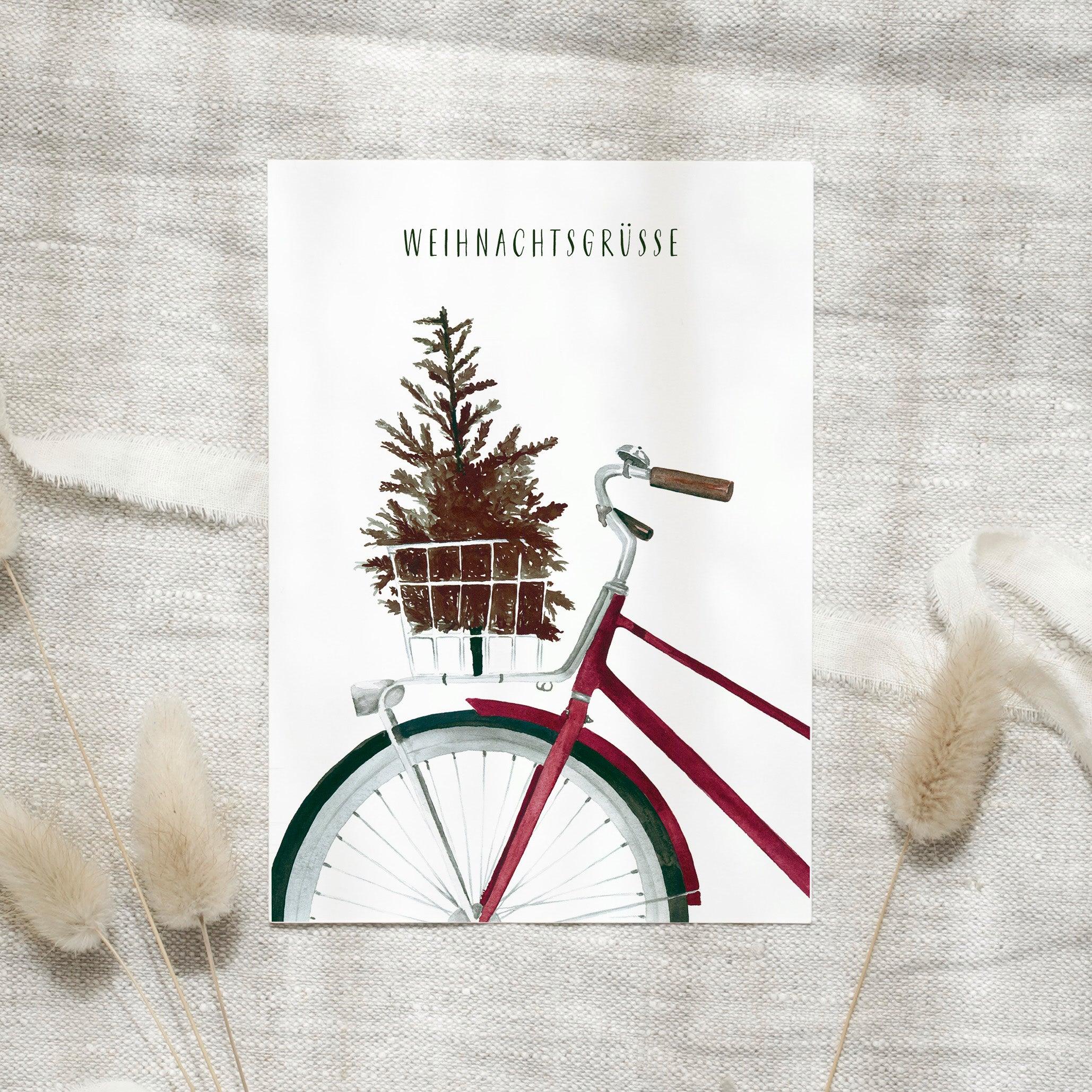Get a unique Christmas card with a beautiful watercolor bicycle motif and give the gift of joy and originality with this special postcard.