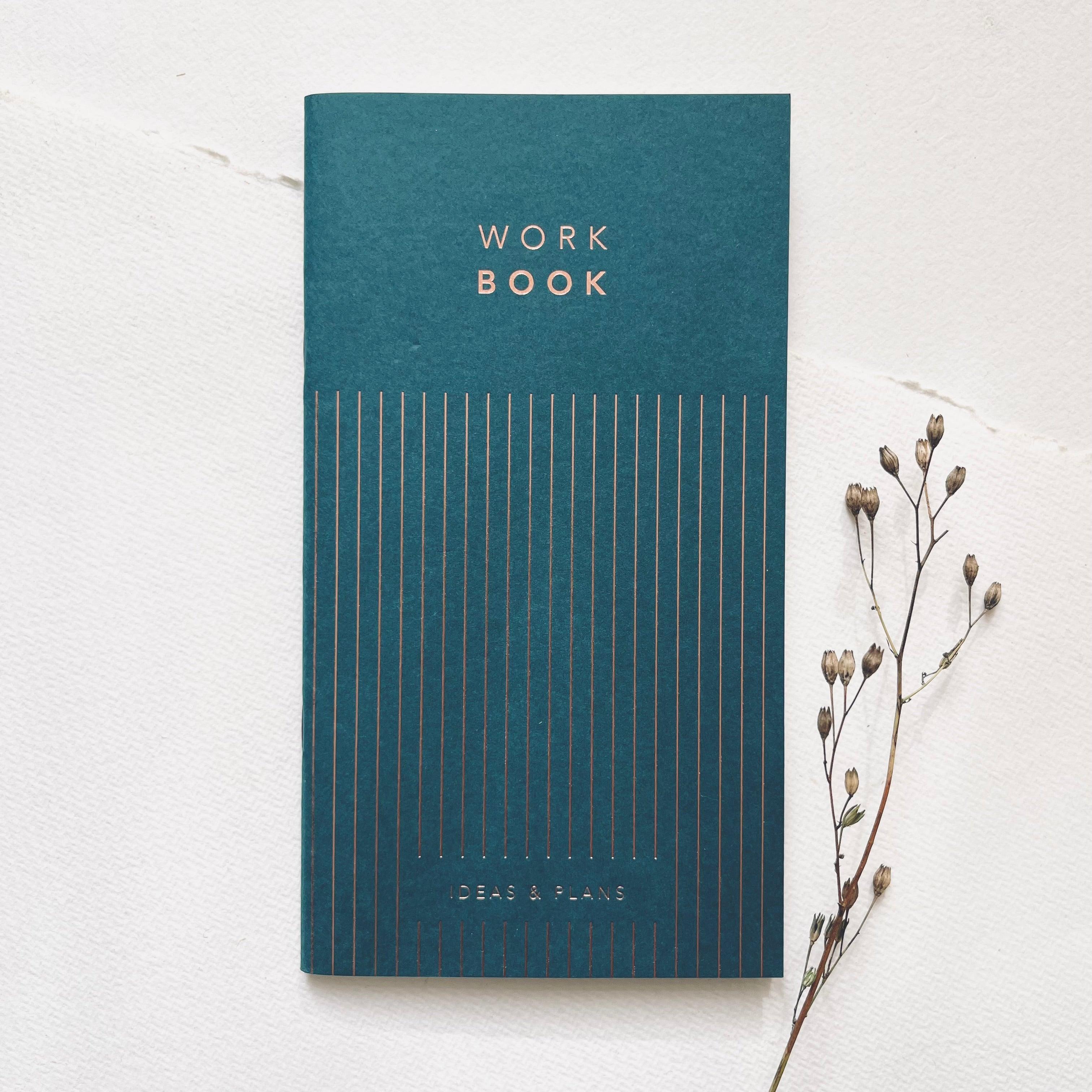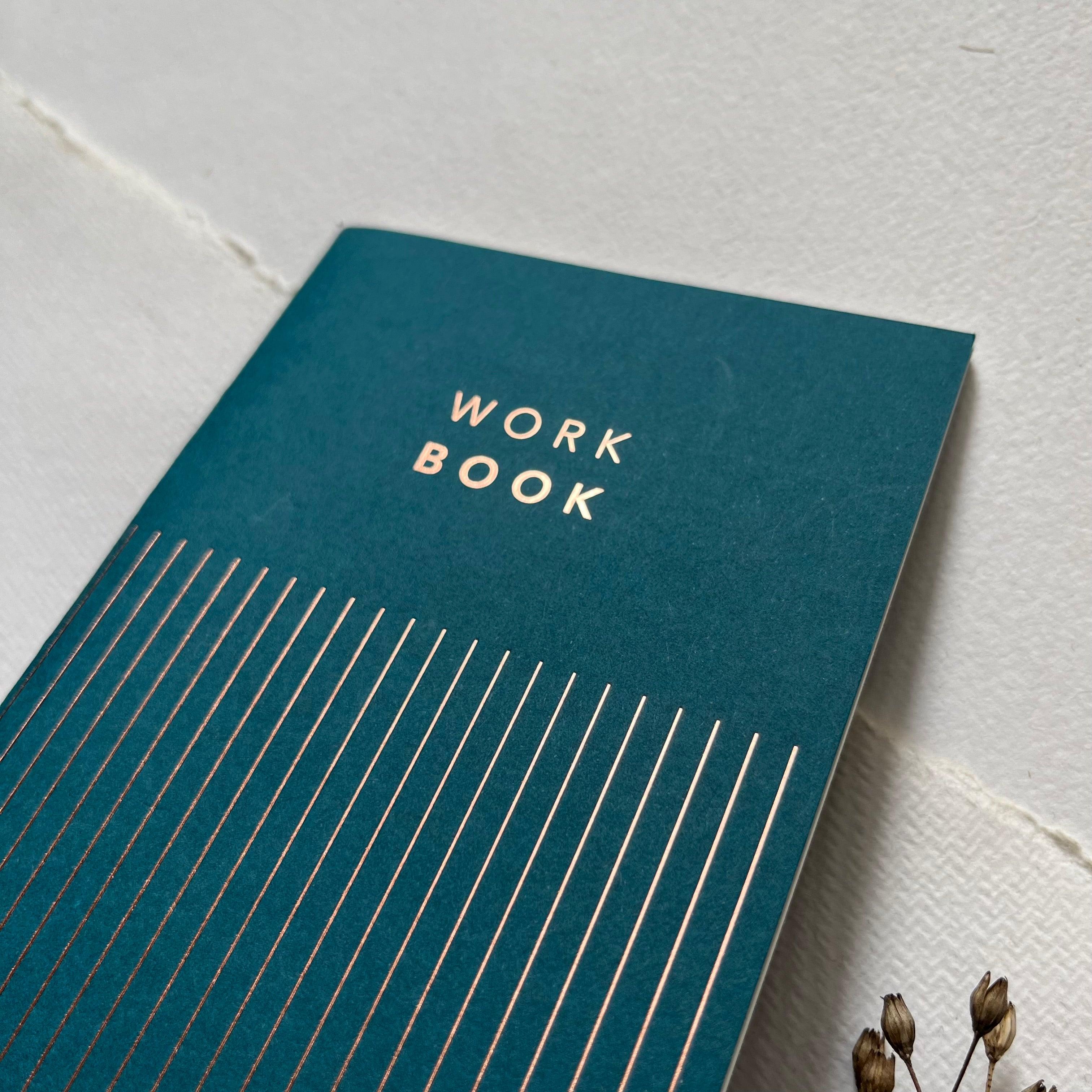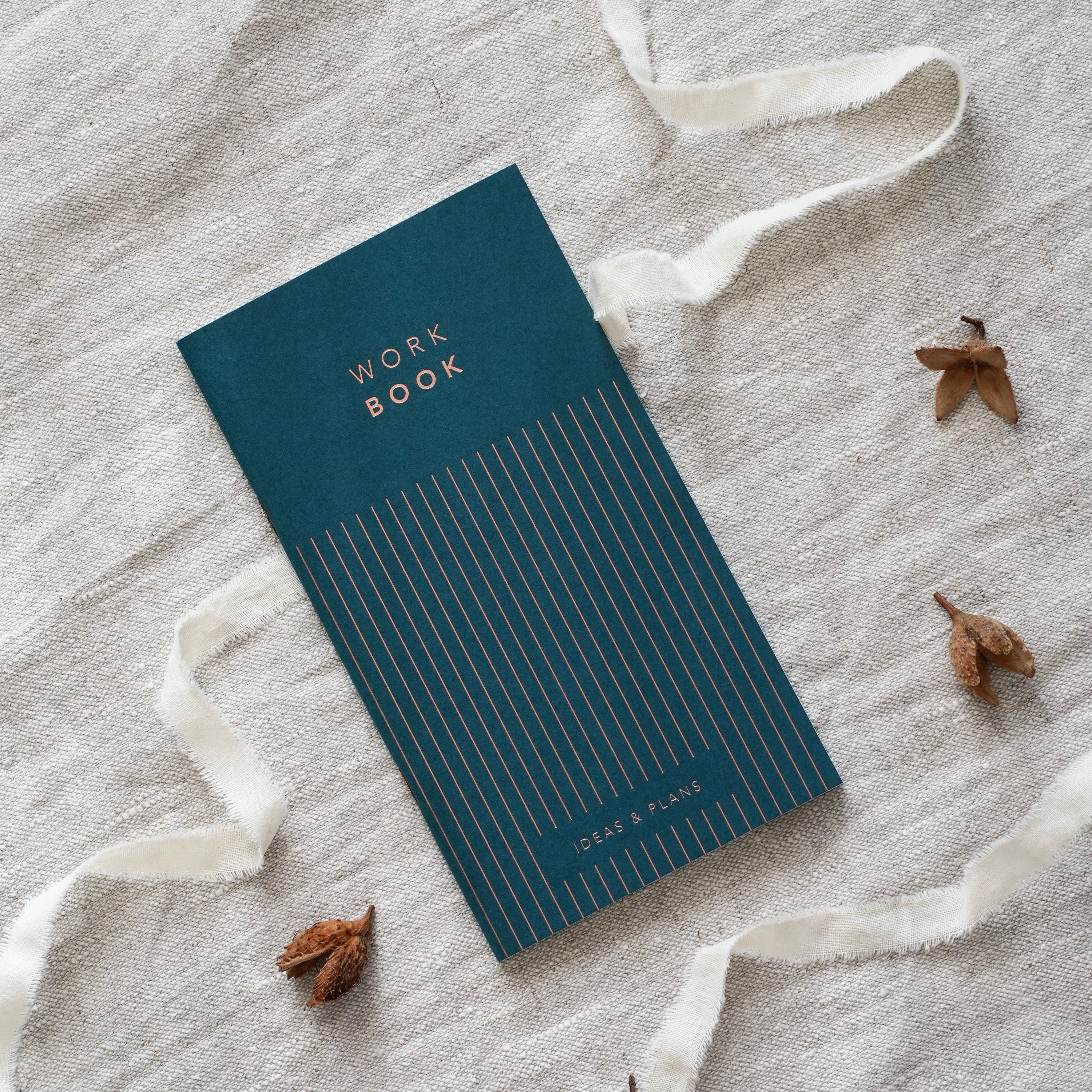 Our WORK BOOK - PETROL in a restrained, elegant design.