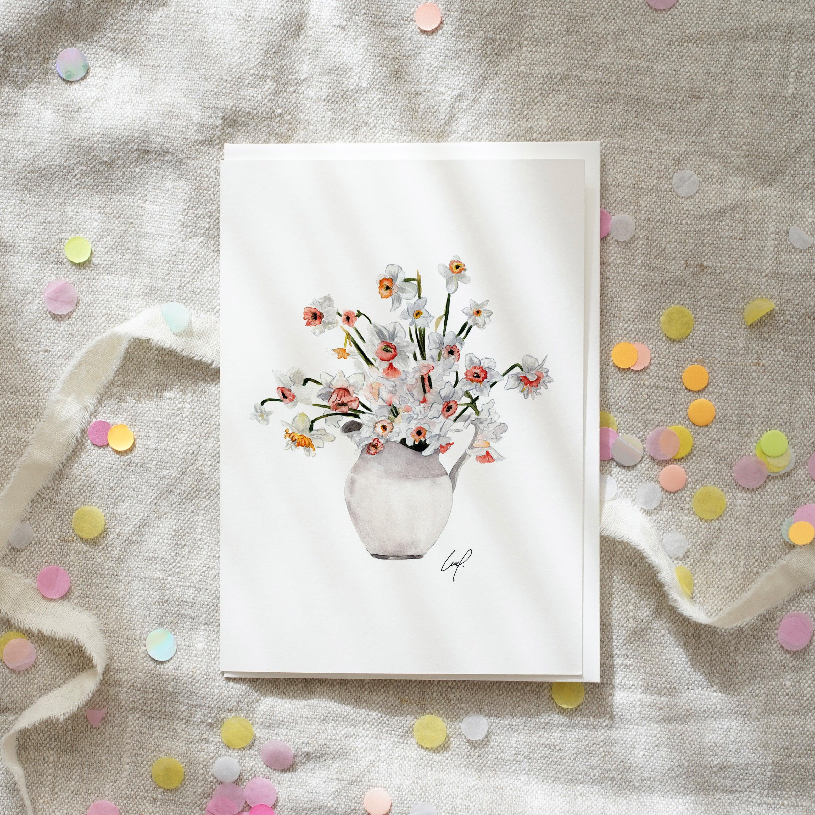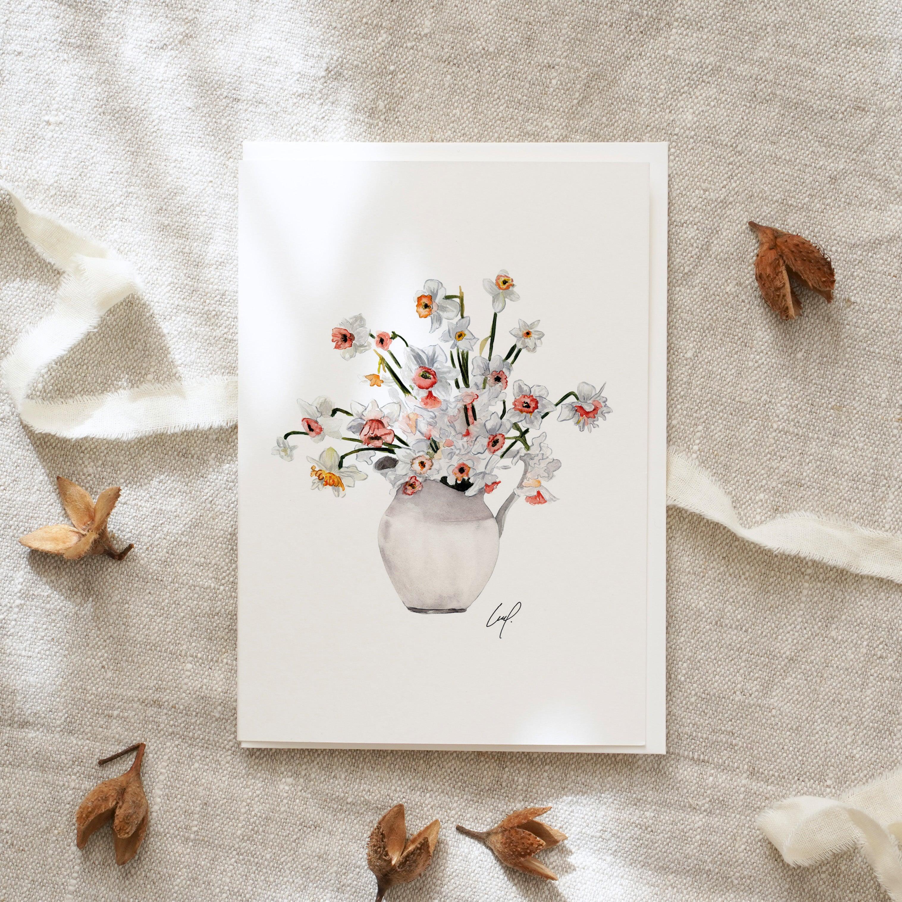 Mit viel Liebe designed in unserem Atelier von Illustratorin Leonie Merle Flöttmann. Die Original-Illustration - von Hand gemalt mit Pinsel, Stift und Aquarellfarben - wird anschließend im Offsetdruckverfahren auf hochwertiges, warmweißes Hanfpapier (320g) gedruckt.