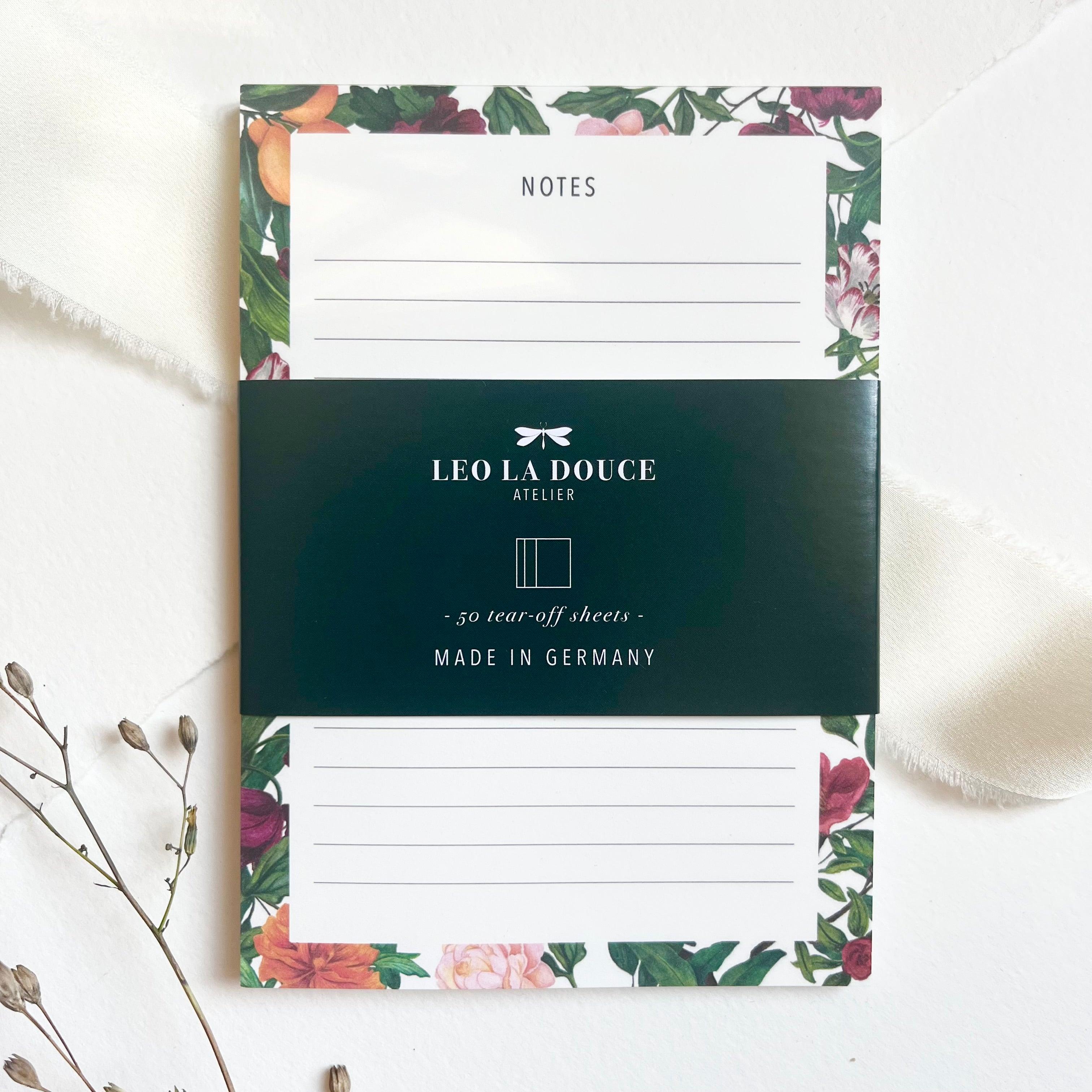 Alle Notizblöcke werden in unserem Atelier von Leonie Merle Flöttmann illustriert und designed. Gedruckt wird im Format DIN A6 auf ein cremefarbenes Naturpapier (80g). Der Notizblock besteht aus 50 Seiten zum Abreißen.
